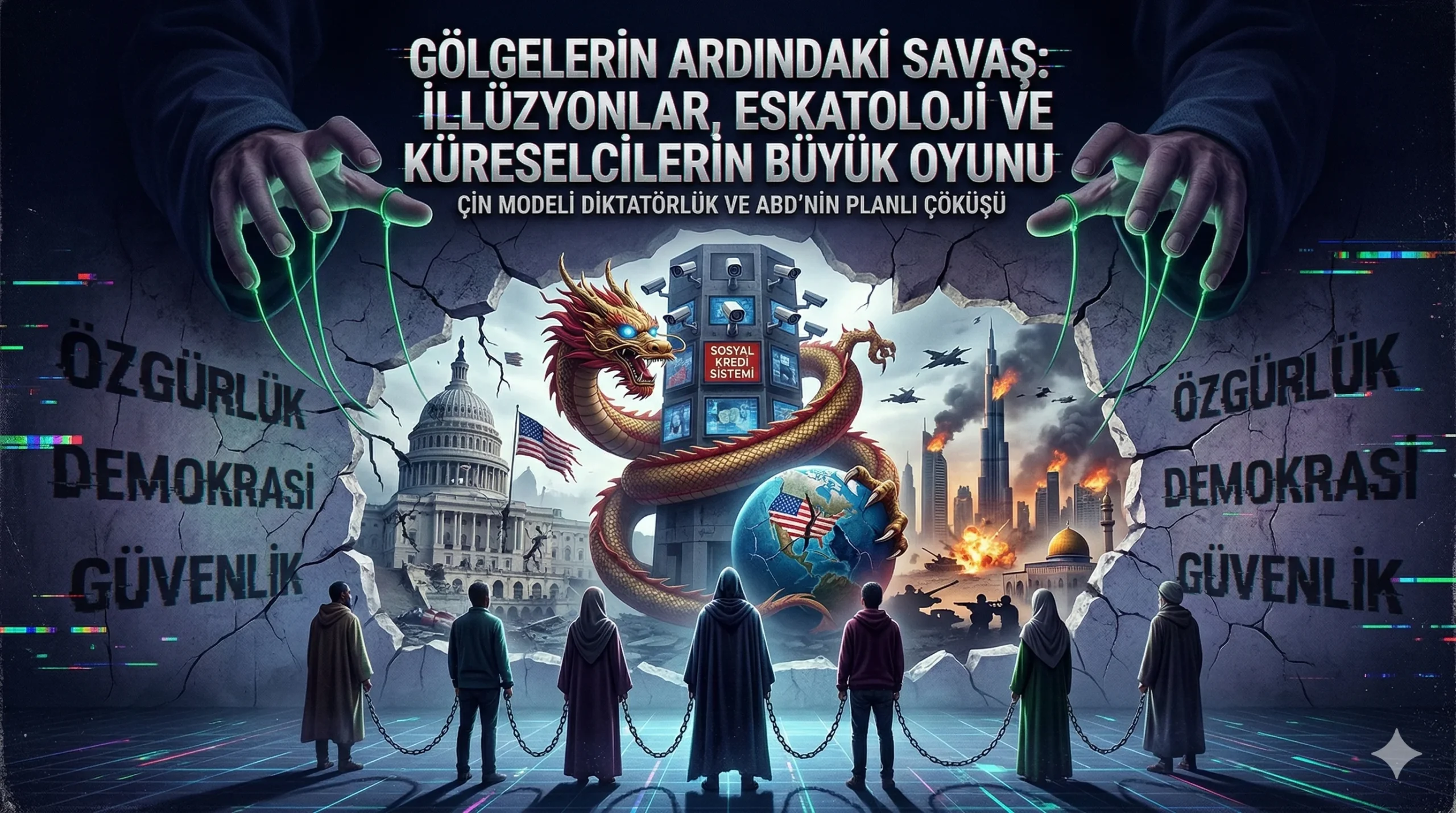 İnsanlar açlık ve korkuyla o kadar çaresiz kalırlar ki, güvenliği ve ekmeği sağlamak şartıyla dijital prangaları kendi elleriyle takmayı talep ederler. İşte Orta Doğu’daki savaşın ve Amerikan ekonomisinin planlı çöküşünün asıl amacı budur. “Hiçbir şeyiniz olmayacak ve mutlu olacaksınız” distopyasının inşası için, mevcut sistemin devasa bir borç krizi ve savaşla yıkılması şarttır. Kaosun zirvesindeyken sahneye çıkacak olan küreselciler, barışı ve düzeni sağlama vaadiyle Çin’in teknolojik gözetim modelini tüm uluslara tek kurtuluş reçetesi olarak dayatacaklar.